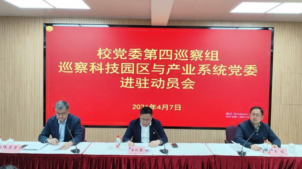 根据校党委统一部署,2026年4月7日下午在延长校区科技楼806会议室,校党委第四巡察组巡察科技园区与产业系统党委进驻动员会召开。校党委常委、副校长王从春,校党委巡察工作办公室副主任胡瑜,校党委第四巡察组组长吴铭、副组长王智君、席慧霞及巡察组全体成员,以及科技园区与产业系统党政领导班子、党委委员、支部书记、部门负责人、校党代会代表、校教(工)代会代表、工青妇组织负责人、民主党派代表、教师代表等参加会议。会议由科技园区与产业系统党委书记朱宏涛主持。